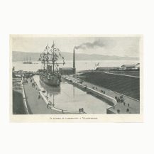 На стр. 23 – информация о Владивостоке, фотография Офицеров на лошадях на фоне Залива Золотой Рог с крейсером «Россия» и карта план.