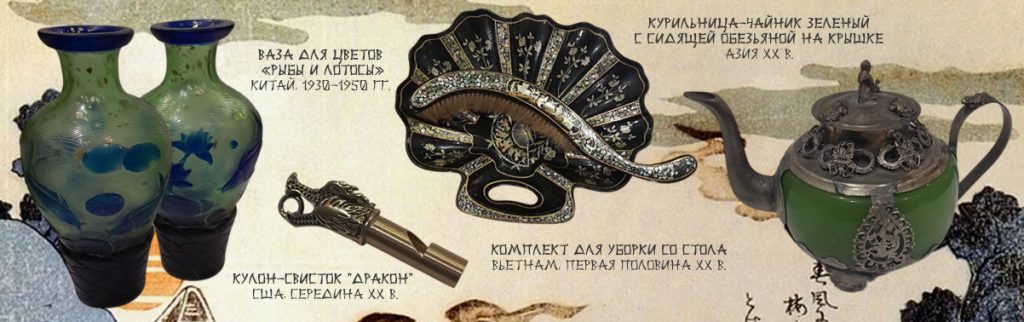 Фарфор, перегородчатая эмаль, многослойное стекло, лак, серебро и текстиль представлены как носители устойчивых символов и художественных форм. Лотос и рыбы, бамбук и дракон, веер и самурайский сюжет раскрываются как элементы визуального языка, сформировавшегося в восточной культуре и получившего широкое распространение в мировом искусстве.